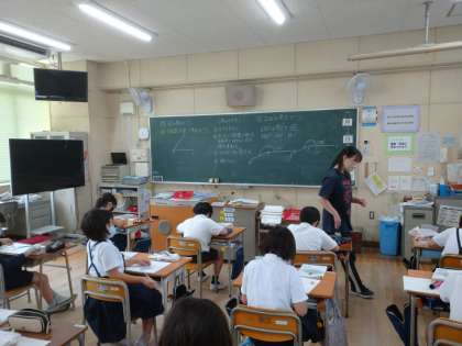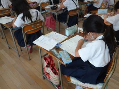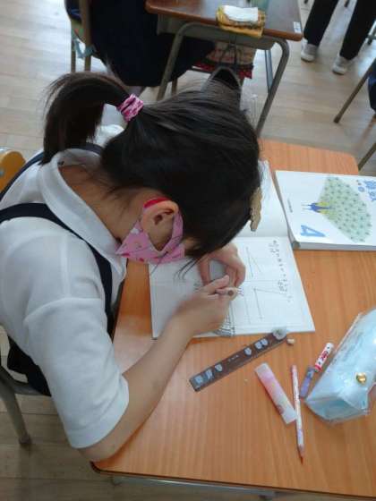 分度器を使って角の作図をしています。しっかりと角を測っています。