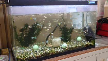 毎週、管理作業員さんがグッピーの水槽をきれいにしてくれます。最近、赤ちゃんグッピーがものすごい勢いで増えていくのでびっくりです。