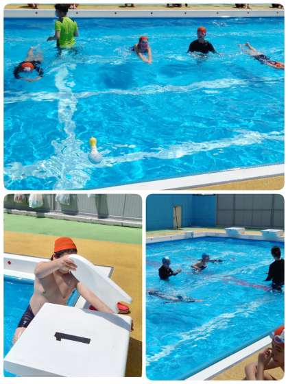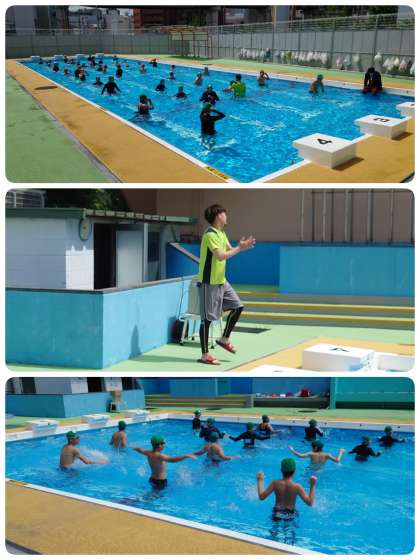 待ちに待ったプール開き。登校時から水泳学習を楽しみにしている子どもがたくさんいました。今日は朝から水温も28度を超えています。