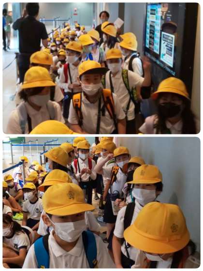 今からプラネタリウムを観ます。他の学校も来ているので、順番に中に入ります。