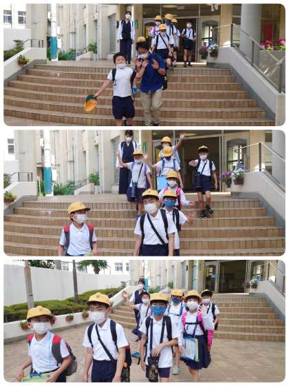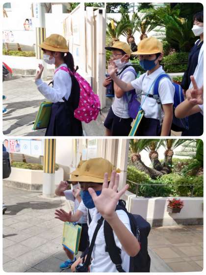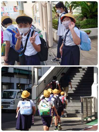 3年生は朝から超ごきげん。「いってきま〜す!!」と元気な声であいさつをして出発しました。今日は、あべのハルカスとタスカル(阿倍野防災センター)に行って学習してきます。