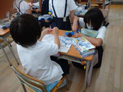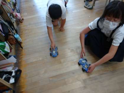 乾電池と豆球とのつなぎ方を学習し、走る車を作りました。