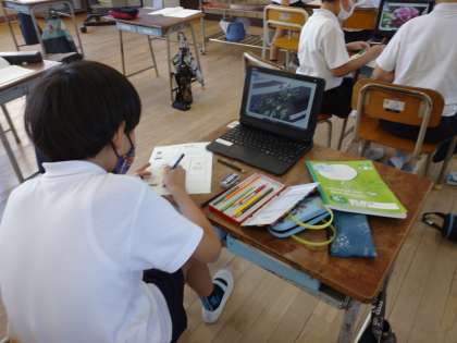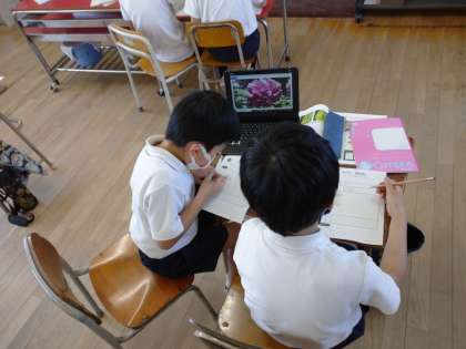 今日はアジサイやパンジーなどの特徴をパソコンで調べながら観察しました。