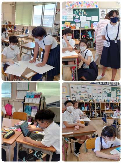 土曜日の九条フェスティバルの準備をしました。どの班もみんなで協力して活動していました。高学年のリードが最高です。
