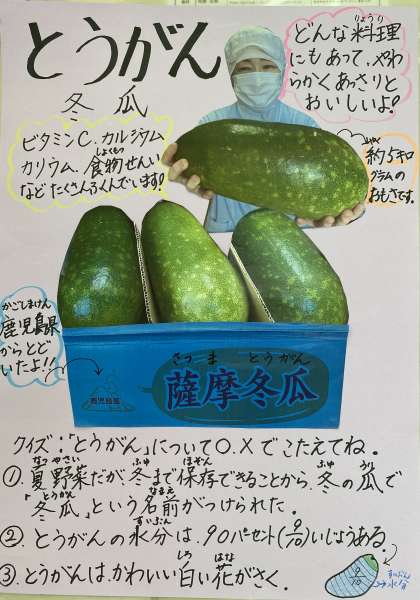 クイズの答えは、1番〇、2番〇、3番×です。とうがんの花は黄色です。