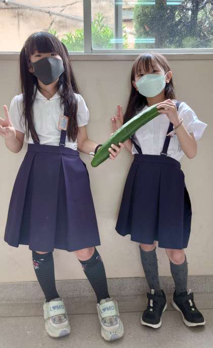 2年生が育てているキュウリ。この休みの間にびっくりするぐらいでっかくなっていました。子ども達もびっくり!!収穫した野菜は、順番にお家に持って帰ります。ご家族のみなさんで楽しんでください。