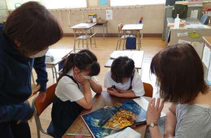 子ども達が、お話に書いてあるお宝を探していました。目を凝らして集中して探しています。お宝を見つけることができたら、とってもうれしそう!