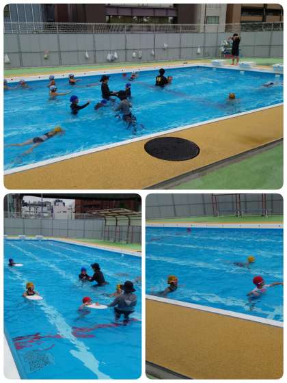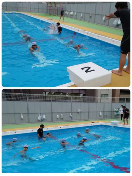 今日は、全学年プール納めでした。低学年の様子を見に行くと、1・2年生は、ビート板を使って、25mに挑戦していました。驚くばかりの成長ぶりです。3年生は、音楽に合わせて、息継ぎの仕方やクロールの手のかき方などを練習していました。短い期間の水泳学習ですが、どの子もレベルアップしていました。