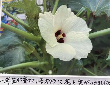 今日のクイズの答えは1番〇、2番〇、3番×です。オクラは畑で、実の先が上を向いて育ちます。