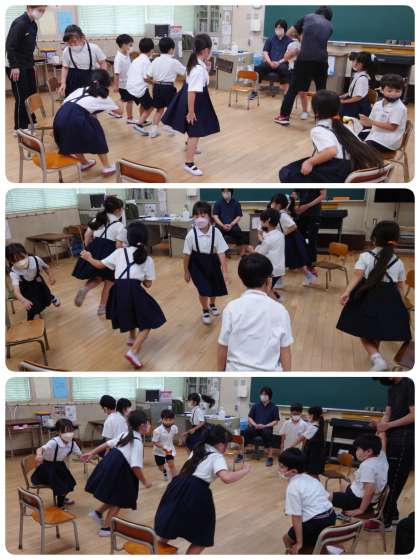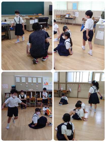 1・2年生が一緒にお楽しみ会をしていました。進行するのは2年生。どう説明したらゲームのルールを伝えることができるのか、先生にヒントをもらいながらがんばりました。ハンカチ落としとフルーツバスケット、いす取りゲームをして遊びました。みんな笑顔で楽しんでいました。