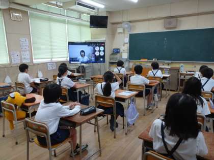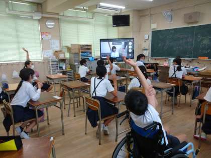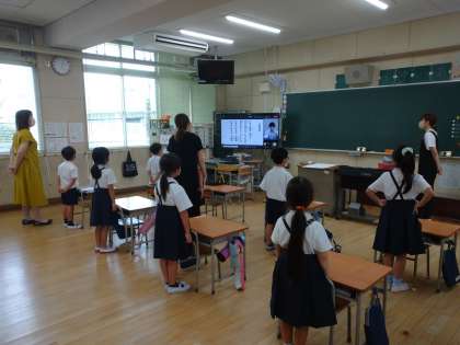 チームスで終業式をしました。大阪市歌や校歌をしっかり歌い、校長先生の話を静かによく聞いています。
