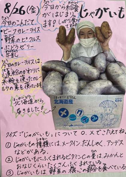 給食では、食物アレルギー対応の充実を図るため、「食物アレルギーサポート月間」を設け8月から10月まで実施しています。