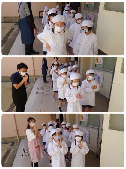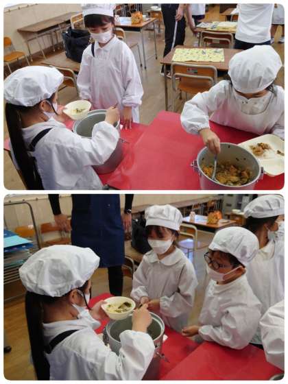 東っこは、しっかり給食を食べます。「いただきます」の後に、自分の食器に入っている量が多くて減らす子もいますが、それよりもおかわりをする子がたくさんいます。毎日残食はほぼ0で、給食調理員さんも喜んでくれています。毎日の給食を楽しみにしている子ども達です。