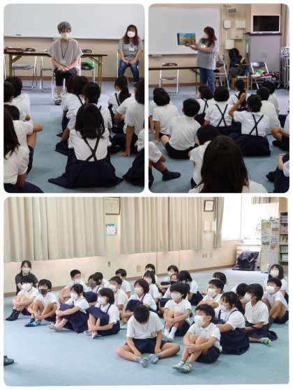 1・2年、3・4年、5年、6年に分かれて行いました。おはなし・絵本の読み聞かせ・紙芝居ブックトークなど、それぞれの学年にぴったりの内容でした。