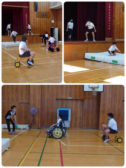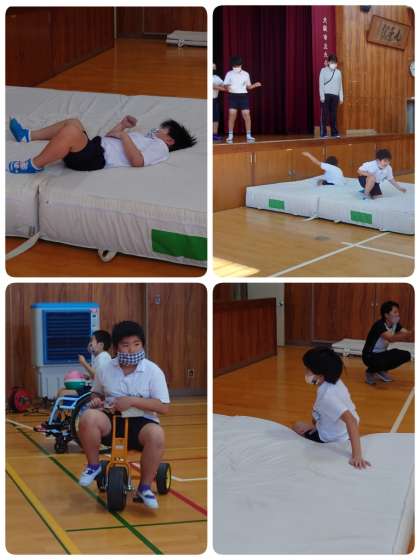 今日の「なかよしタイム」は、講堂で行いました。好きな運動遊びをして、お友達と交流していました。みんなご機嫌の笑顔です。