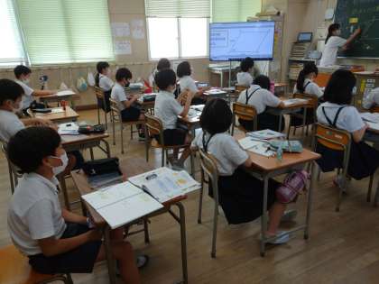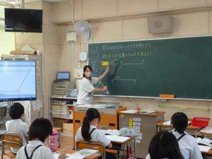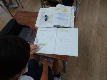 今日は、平行四辺形を描く学習をしました。上手に三角定規を使って、平行四辺形を描いていました。