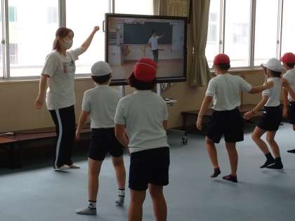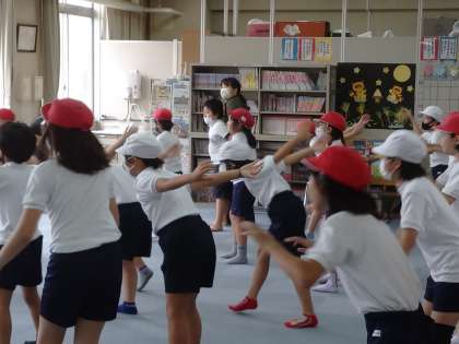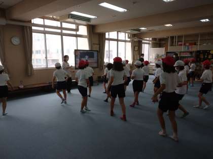 運動会のダンスを曲に合わせて踊りました。上手にできています。