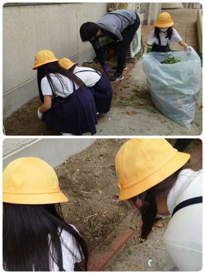 2年生が学習園の片づけをしていました。今まで育てていた植物をきれいに抜きました。抜いた後の土を観察していると、大きなダンゴムシとちっちゃいダンゴムシがぞろぞろ出てきました。「先生、ダンゴムシ飼いたい。」「じゃあ、育ててみようか。」ということで、さっそく先生が飼育ケースを取ってきてくれました。これからダンゴムシのエサを調べて飼育・観察開始です。