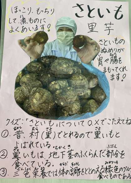 さといもは、三食栄養では、エネルギーのもとになる黄色のグループの食べものです。