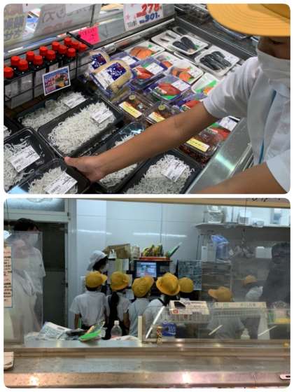 1番売れている魚は「しらす」だそうです。袋詰めの実習をさせてもらいました。1パック90gです。こんな実習までさせていただき、みんなドキドキです。