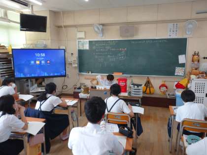 算数の比の学習を、実際に前で演示して学習しました。難しい単元ですが、みんなよくがんばっています。