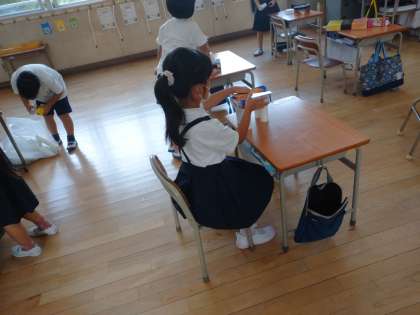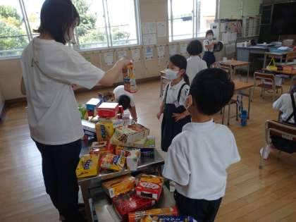 「くじょうひがし どうぶつえん」と題し、みんなが工夫して空き箱を使い、動物を作っています。