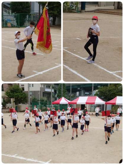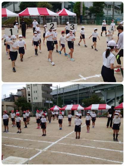 1時間目は、運動会の全体練習でした。開会式・はじめの体操・全校競技(たてわりリレー)・閉会式の練習をしました。高学年の子ども達が自分の役割をきちんとわかっているので、とてもスムーズにできました。