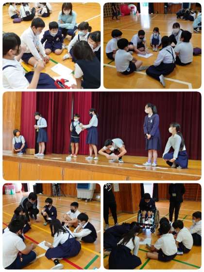 前期のたてわり班での児童集会は今回で最後になりました。運動会の後は、後期のたてわり班でまたみんなで仲良く活動していきます。