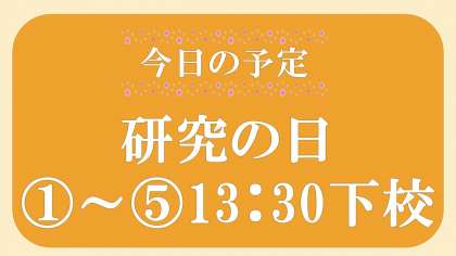 5校時、6年で研究授業を行うため、6年生の下校は14:45ごろになります。他の学年は、13:30の下校です。ご予定よろしくお願いします。