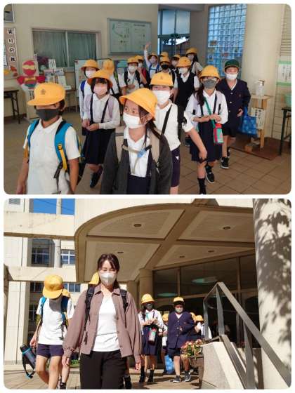 4年生が、「津波・高潮ステーション」に向けて出発しました。子ども達はみんなごきげんの笑顔でした。気をつけて行ってらっしゃ〜い!!