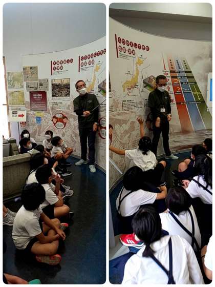 資料がたくさんあって、分かりやすくお話をしてくださるので、子ども達は真剣な表情で聞いています。