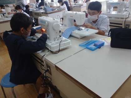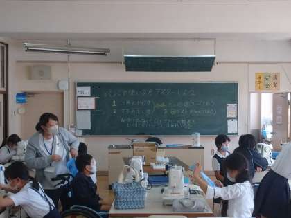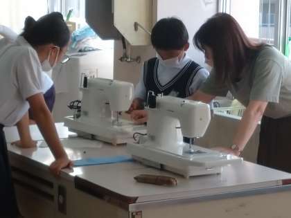 今日は、ミシンの使い方を学習しました。今回も上糸と下糸をかけるのをがんばっています。この間より成長していますよ。