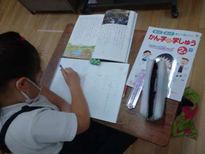 今日は、ビーバーが作る巣の作り方について、読み取りました。そして、まるで〜を使って書く学習をしました。
