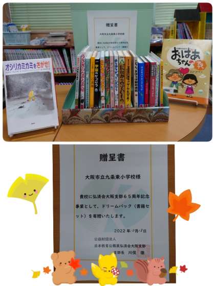 児童朝会で、子ども達に日本教育公務員弘済会大阪支部から寄贈していただいた本の紹介をしました。いろいろなジャンルの本があって、どの本を紹介しようか迷いました。