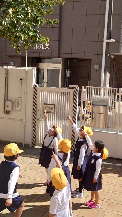 1年生が学習園や正門の近くて「あきみつけ」をしていました。みつけた秋はタブレットを使って写真でパチリ。