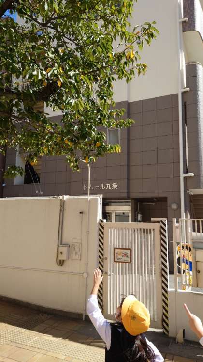 「どこ?教えて!!」と頼むと、全速力で桜の木の下に行き、みんなが「ここ、ここ!!」と指をさして教えてくれました。小さなミノムシは、木から細い糸でつながっていて、糸がキラキラ光っていました。優しい子ども達です。