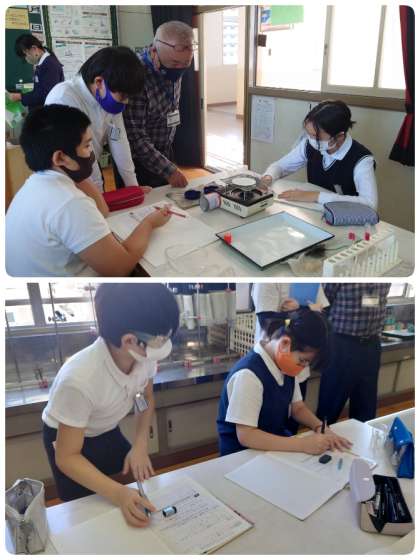 6年生の子ども達は、ノートにしっかり自分の予想や考えを書くことができていました。また、グループのみんなで協力して安全に気をつけて実験することもできていました。何にでも一生けんめい取り組む6年生です。
