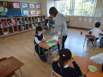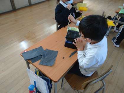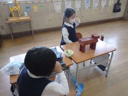 考えた動物を作って、色を丁寧に塗っています。みんな集中して取り組んでいます。
