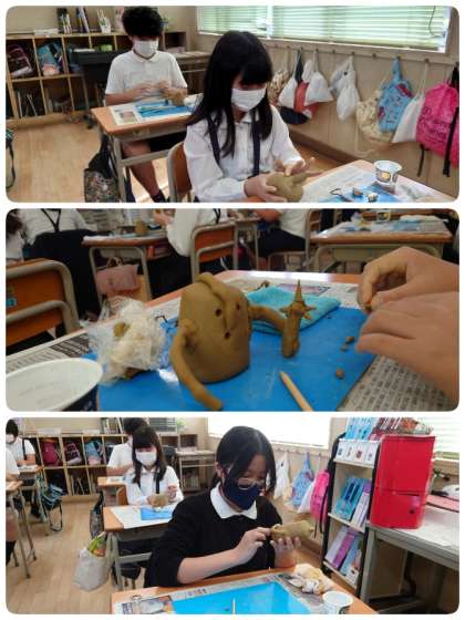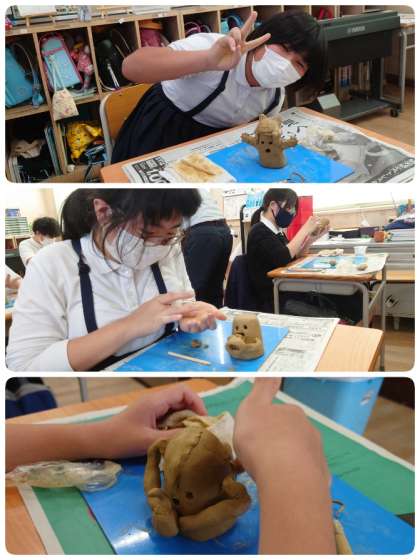 いよいよ、はにわ作りに挑戦。一人一人いろんな工夫をしながら形を作っていました。子ども達の思いがいっぱい詰まった、お気に入りのはにわが完成しました。