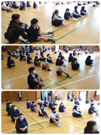 今日の児童朝会では、まず、たてわり遠足のことについてお話ししました。