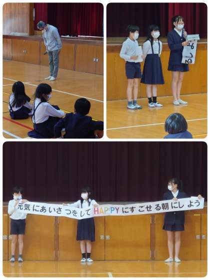 代表委員会から、11月7日(月)から1週間取り組む「あいさつ週間」についてお話がありました。
