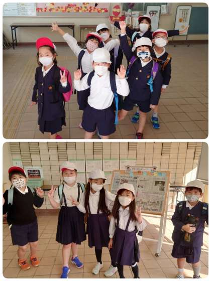 みんなご機嫌の笑顔です。気をつけていってらっしゃい。