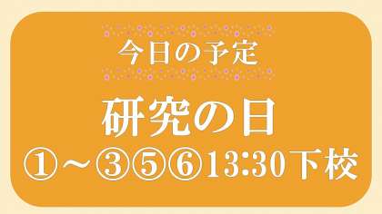 5校時、4年で研究授業を行うため、4年生の下校は14:45ごろになります。他の学年は、13:30の下校です。ご予定よろしくお願いします。