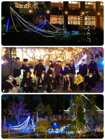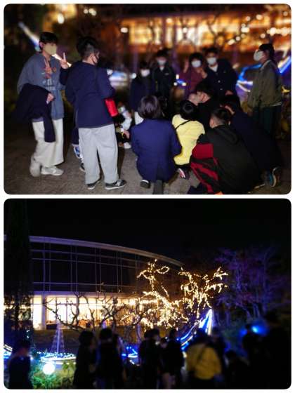 ごはんの後に、キラキラのイルミネーションのところでパチリ。