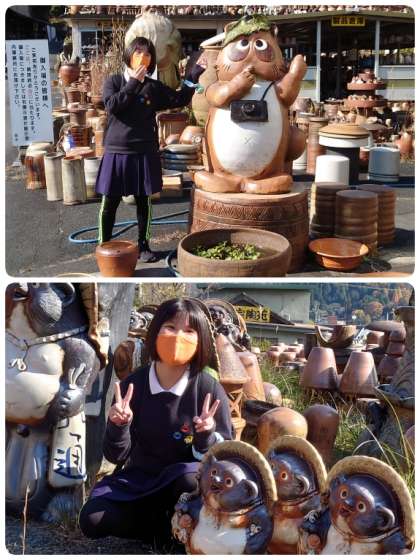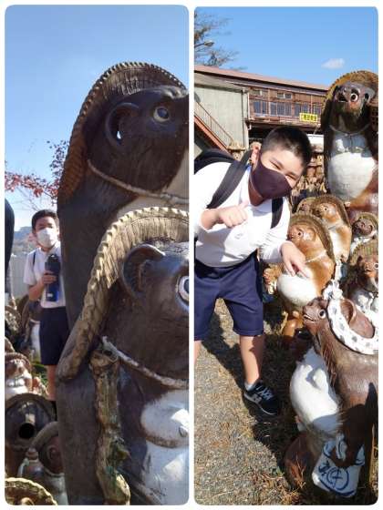 お買い物の後に、たぬきの中でかくれんぼ。自分に似てるたぬき探しをしました。