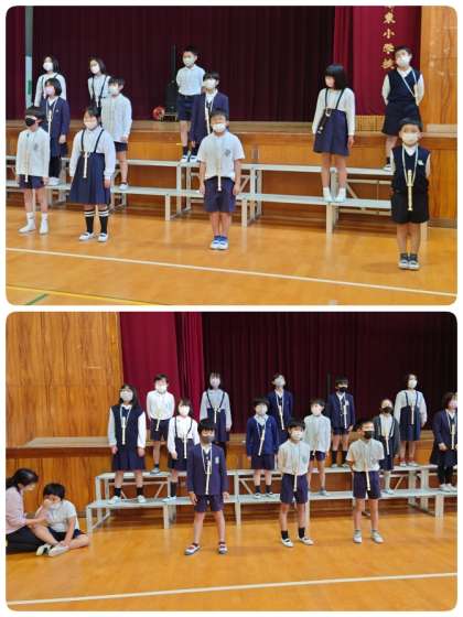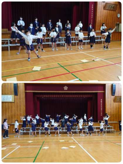 5時間目、3・4年生が五校園音楽交流会で披露する歌とリコーダーの練習をしました。ひな段を使って練習するのは今日が初めてなので、並び方から覚えました。リズムにのって体を動かしながらの演奏で、とても楽しそうでした。児童集会の時に発表してもらうことにしています。土曜授業でも披露しますのでお楽しみに。