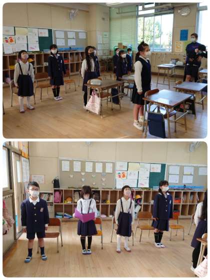 1時間目は、1・2年生が音楽をしていました。教室に入ったときは、九条東小学校の校歌を、続いて大阪市歌を歌っていました。新しくお友達が増えたので、九条東小学校の校歌と大阪市の歌を覚えてもらうために練習していたのだと思います。子ども達は、しっかり声を出して歌っていました。音程もばっちりです。