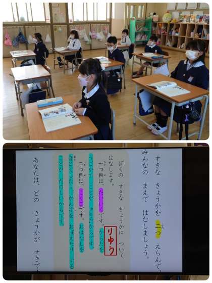国語の学習で、自分の好きな教科と好きな理由について文にまとめていました。なぜその教科が好きなのか、好きな理由をそれぞれしっかり書いていました。今度の時間は、そのうちの2つを選んでみんなの前で発表する予定です。