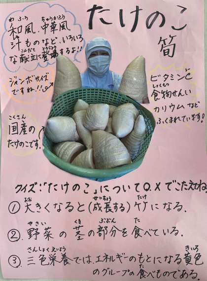たけのこは野菜なので、三食栄養では、体の調子を整える緑色の食べものです。