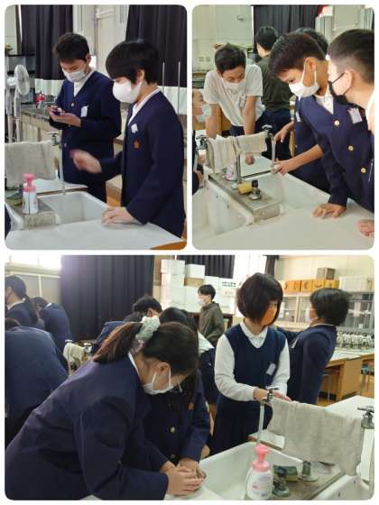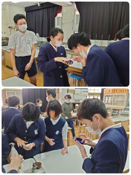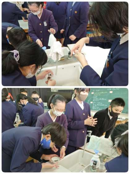 6年生は、理科「大地のつくりと変化」についての学習で、火山灰の観察をしていました。火山灰にはどんな特徴があるのかを調べます。シャーレに火山灰を少し入れて、そして水を足して混ぜ混ぜ。濁った水の底に黒い粒々が残りました。この粒々は、火山灰に含まれる鉱物です。色や手ざわりなどを確かめました。次は、顕微鏡を使って観察をする予定です。